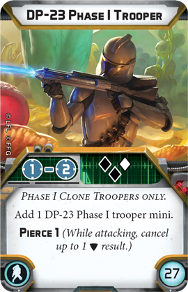 Note the cost is cut-off and dark here but it’s also “15.” It also gives Scout 1 which is neat but Guardian 1 is very interesting on a potentially very cheap unit. At 67 points a Boil-only Phase 1 would be the cheapest permanent guardian in the game, and while it’s one fewer guardian value and 3 fewer health than a naked IRG this unit would have more access to surges via Aggressive Tactics or Bolster (it would likely not be able to share other clone’s surge tokens when doing guardian rolls based on the way the rules are currently written) and it would be able to do something other than act as a sponge since it can take aims and dodges its friends can use.